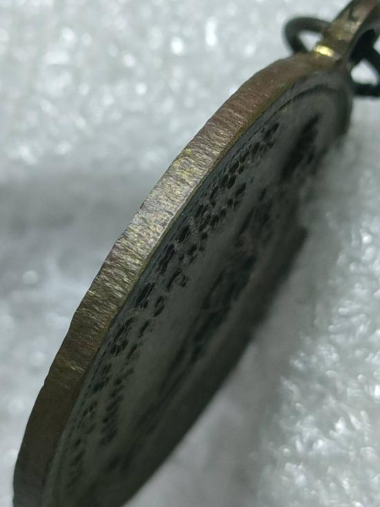 "เคาะเดียว"เหรียญบังตัว กรมหลวงชุมพรเขตอุดมศักดิ์ หลังสมอ 3 กงจักร ปี2515 เนื้อปลอกกระสุนปืน ( พิมพ์หูเดียว ) |