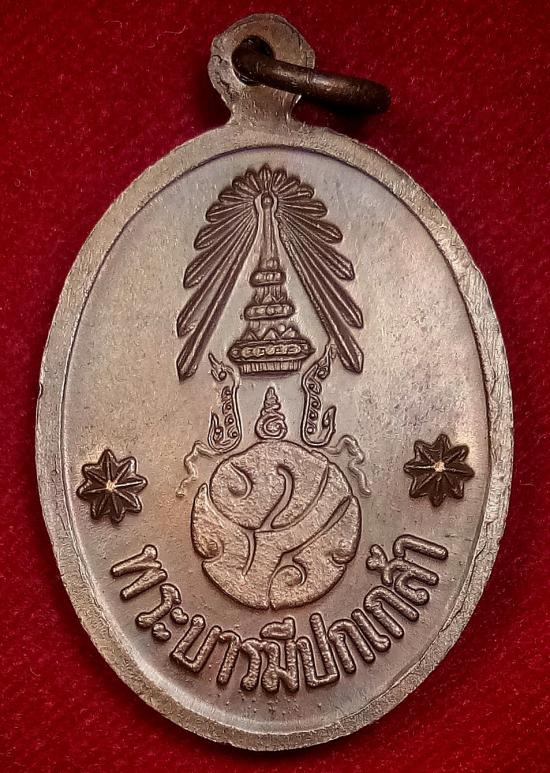 ด้านหลัง : เป็นตรา ภปร. ด้านบนมีพระมหาพิชัยมงกฎเปล่งรัศมี มีอักษรว่า "พระบารมีปกเกล้า" มีสัญลักษณ์ดาวแปดแฉก 2 ดวงอยู่ด้านข้าง
