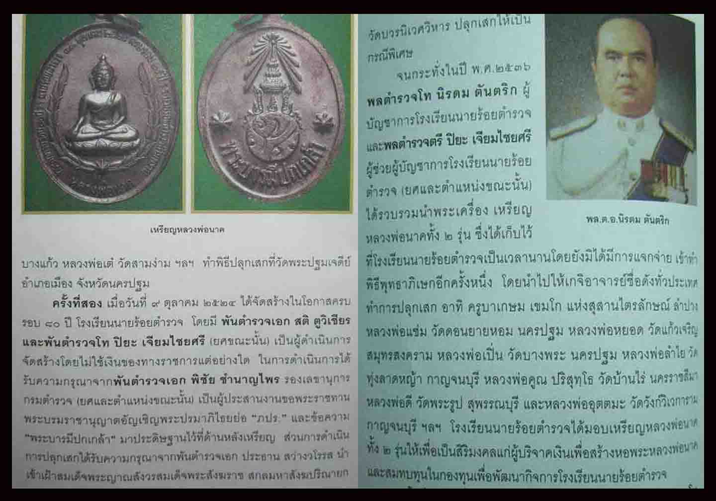 เหรียญหลวงพ่อนาคโรงเรียนนายร้อยตำรวจสามพราน รุ่น2 อำเภอสามพราน จังหวัดนครปฐม เนื้อทองแดงรมน้ำตาล จัดสร้างขึ้นเพื่อเป็นที่ระลึกครบรอบ 80 ปี โรงเรียนนายร้อยตำรวจ และครบรอบ 25 ปี โรงเรียนนายร้อยตำรวจสามพราน เมื่อวันที่ 9 ตุลาคม พ.ศ.2524 โดย พ.ต.อ.สติ ตูวิเชียร และ พ.ต.ท.ปิยะ เจียมไชยศรี(ยศขณะนั้น)