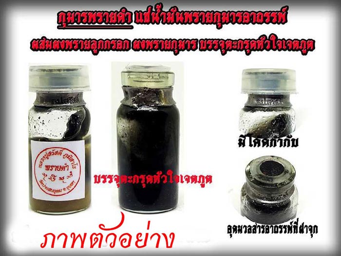 มวลสาร...แกะจากไม้ที่เหลือจากกองฟอนเผาศพเด็กจมน้ำตาย นำมาทำพิธีล้างเสนียดจัญไร ให้เหลือแต่คุณ จากนั้นแช่น้ำมันพรายกุมารอาถรรย์ น้ำมันจันทคราส อาจารย์เปล่ง บุญยืน ผสมผงลูกกรอกพรายดำ ผงพรายกุมาร ผงเถ้าเชิงตะกอน ขี้ผึ้งหน้าผี บรรจุตะกรุดหัวใจเจตภูติ(พรายกระซิบ) อุดด้วยผงอาถรรย์ที่ฝาจุก