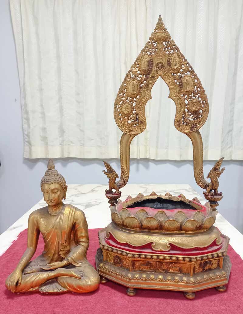 องค์พระกับฐานถอดออกได้ 2 ชิ้น เนื้อโลหะกระหลั่ยทอง ผิวแห้งหิ้ง !!