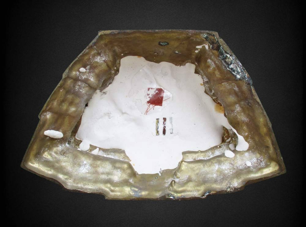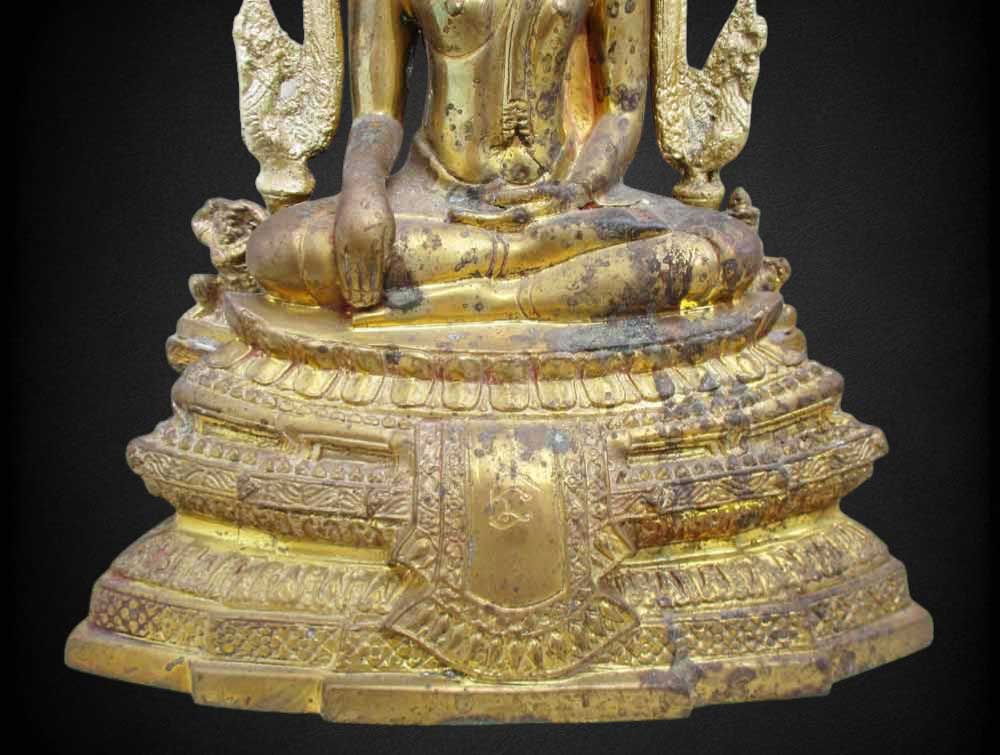 ภาพใต้ฐานกว้าง 8 นิ้ว อุดปูนบรรจุ จีวร ตะกรุด 3 ดอก ( ทอง นาค เงิน )