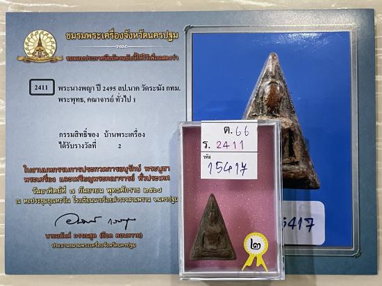 สร้างปี 2495 สภาพสวย สมบูรณ์ ไม่หักไม่ซ่อม รับประกันพระแท้ ดูง่าย ใบประกาศรางวัลที่2งานสมาคมงานใหญ่สามพราน