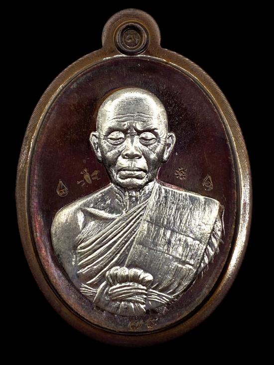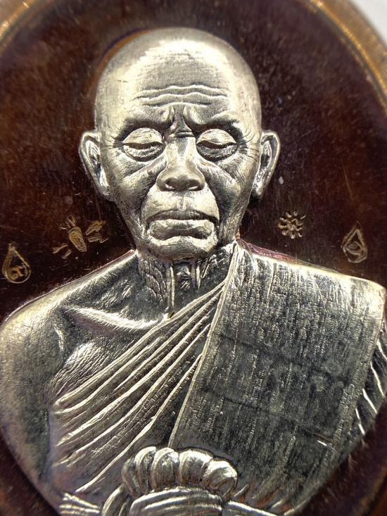 เหรียญรูปไข่ หลวงพ่อคูณ ปริสุทฺโธ วัดบ้านไร่ พิมพ์ครึ่งองค์ รุ่นปาฏิหาริย์ EOD ปี56 เนื้อทองแดงหน้ากากเงิน หลังเรียบ ไม่ตัดปีก เลขสองหลักสุดสวย 79 หายาก