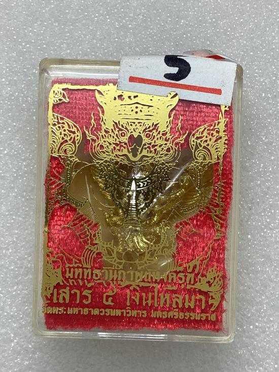 พญาครุฑเสาร์ ๕ เงินไหลมา วัดพระมหาธาตุ วรมหาวิหาร จ.นครศรีธรรมราช สูง 2.5 ซ.ม. เนื้อทองระฆังศรัทธา กล่องเดิม ( แจกผู้ร่วมพิธีปลุเสก ) |