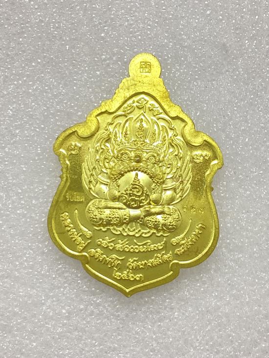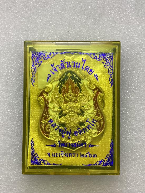 เหรียญพญาครุฑ รุ่น เจ้าสัวเวนไตย หลวงปู่ฟู อติภทฺโท วัดบางสมัคร จ.ฉะเชิงเทรา เนื้อทองทิพย์ ลงยาสี ธงชาติ กล่องเดิม |