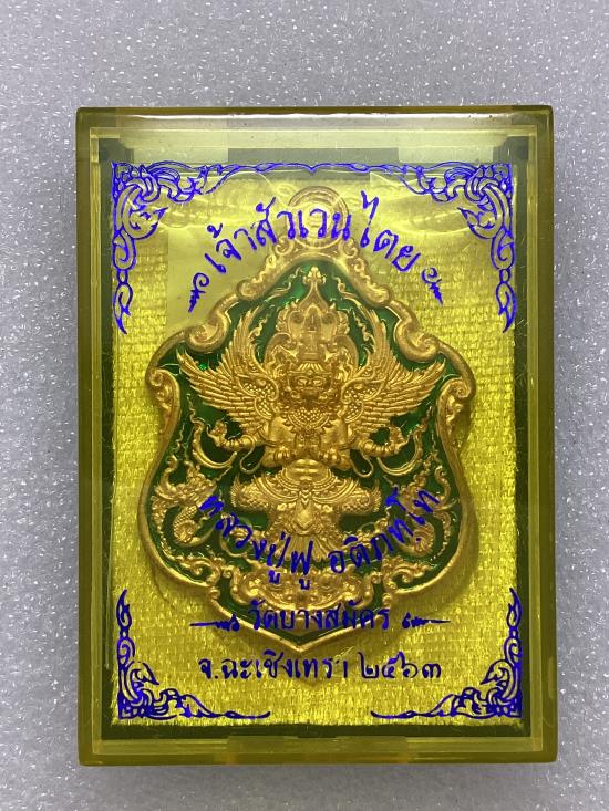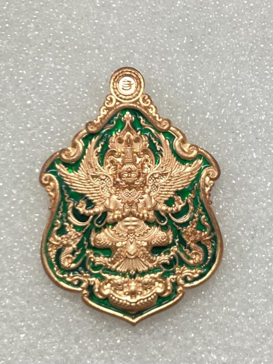 เหรียญพญาครุฑ รุ่น เจ้าสัวเวนไตย หลวงปู่ฟู อติภทฺโท วัดบางสมัคร จ.ฉะเชิงเทรา เนื้อทองแดง ลงยาสีเขียว กล่องเดิม |