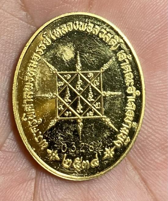 #แดงเคาะแรก# เหรียญหลวงพ่อสวัสดิ์ วัดเม้าสุขา ชลบุรี เจ้าคณะอำเภอบ้านบึง ปี 2538 กะไหล่ทอง บล็อกนอก