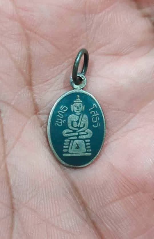 เหรียญเม็ดแตงหลวงพ่อโสธร เนื้อเงินลงถม มีโค๊ต ส. |