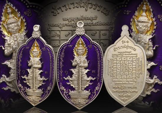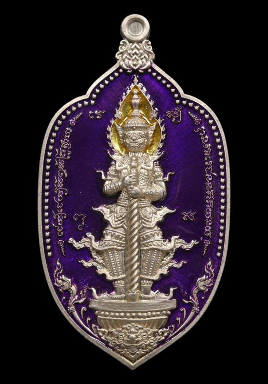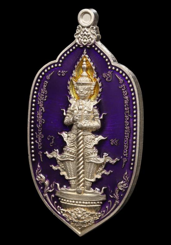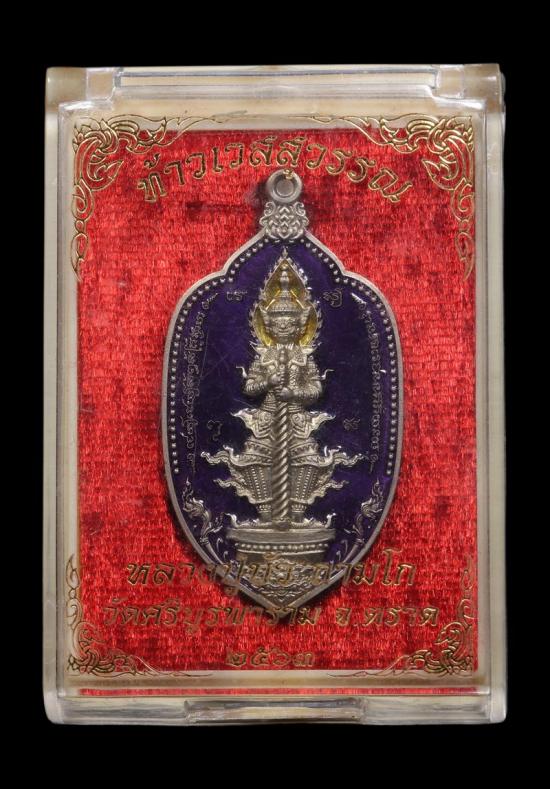 เหรียญท้าวเวสสุวรรณ รุ่นแรกเนื้ออัลปาก้าลงยาม่วง(แจกกรรมการ) หมายเลข184 พระครูสังฆกิจบูรพา(หลวงปู่บัว ถามโก) วัดศรีบุรพาราม(เกาะตะเคียน) จ.ตราด