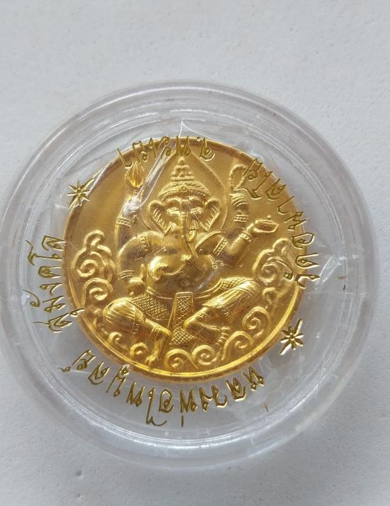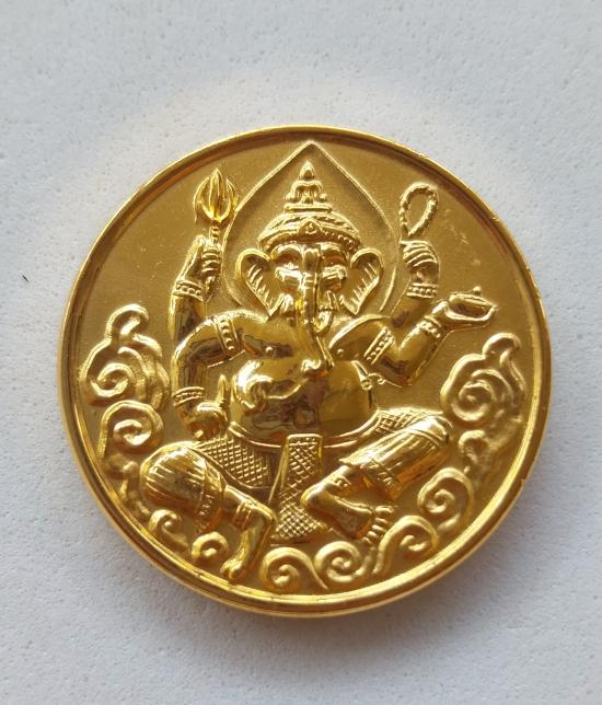 เหรียญพระพิฆเนศรุ่นแรกหลวงพ่อไพบูลย์ สุมังคโลหายากสร้างน้อยออกปี2540ตอกโค๊ต นะ ด้านข้างท้อง |