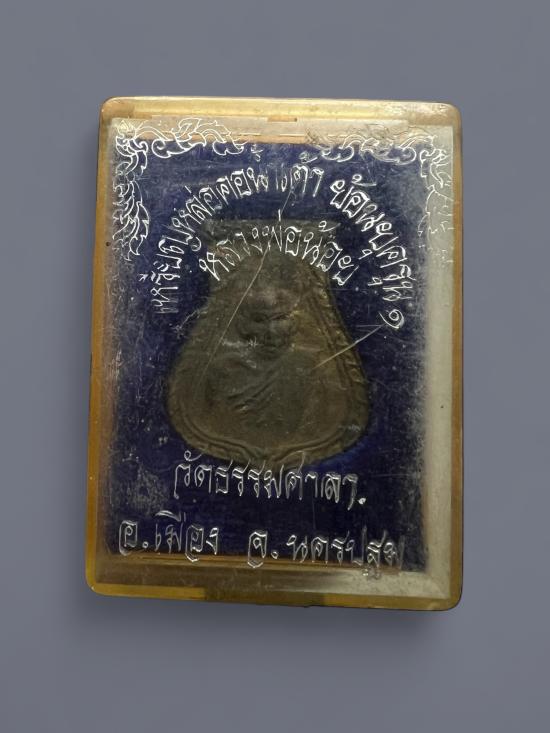 เหรียญหล่อคอน้ำเต้า หลวงพ่อน้อย วัด ธรรมศาลา จ. นครปฐม ย้อนยุครุ่น 1 สภาพสวยมากพร้อมกล่อง |
