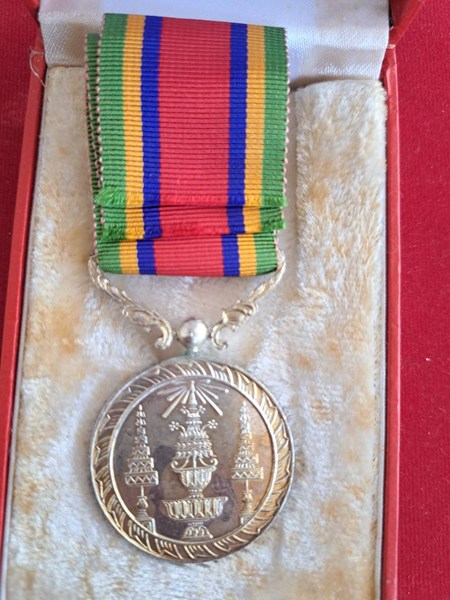 เหรียญเครื่องราชอิสริยาภรณ์ เหรียญช้างเผือกหลังพระมหาพิชัยมงกุฎ เนื้อเงิน พร้อมแพรแถบและกล่องเดิมๆๆ เลยครับ |