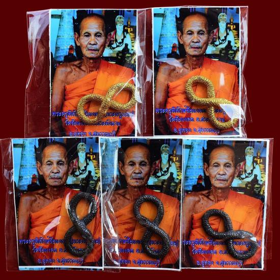 ชุด 5 องค์...งูกินหาง (ตำรับพิสดาร) เนื้อทองแดงผสมฯ + ทองสตางค์ผสมโลหะอาถรรพณ์ ปี 2556 พระครูน้อย วัดชัยมงคล จ.สุพรรณบุรี พร้อมซองรูปเดิมจากวัด สภาพพระตามรูปที่ลงทุกประการ (ขนาดประมาณ 3.5 x 1.5 ซม.)