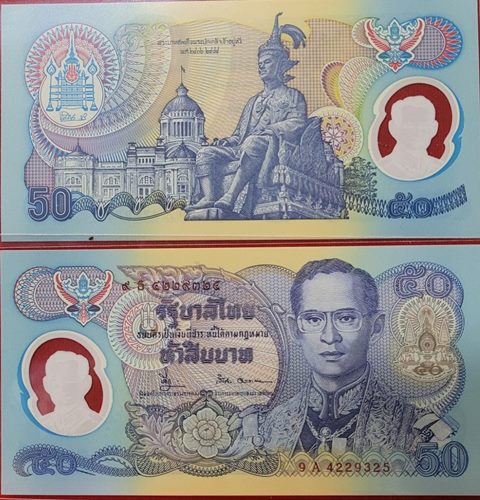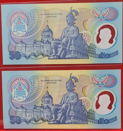 ธนบัตร 50บาท ฉลองสิริราชสมบัติครบ 50ปี ของในหลวงรัชกาลที่ 9 เลขเรียงกัน 2ฉบับ UNC |