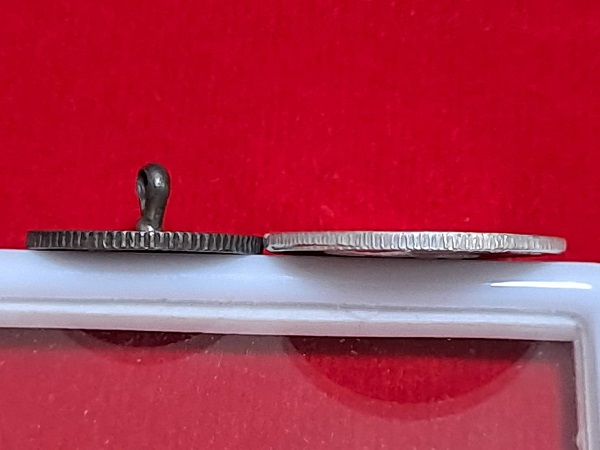 *****เหรียญเงินสลึงหนึ่ง ร.๕ มี ร.ศ.๑๒๗ และเหรียญเงินเฟื้องหนึ่ง ร.๕ มี ร.ศ.๑๒๔ มีเชื่อมด้านหลัง สภาพสวยตามรูป***** |