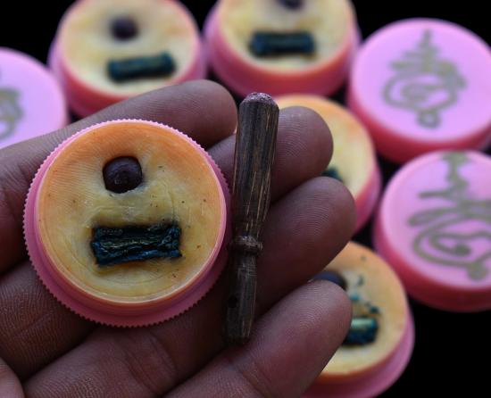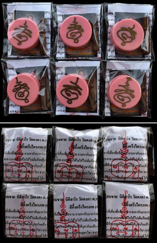 ชุด 6 รายการ...สีผึ้งตรึงไตรภพ (ตำรับเสน่ห์แรง) สร้าง 729 ชุด (แจกฟรีเสือครัวคู่สีผึ้งทุกตลับ) ปี 2553 หลวงปู่สมชาย วัดคงคา จ.กาญจนบุรี พร้อมซองรูปใบฝอยเดิมจากวัด |