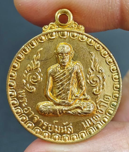 เหรียญรุ่นแรก เนื้อทองแดงกะไหล่ทอง หลวงพ่อมนัส วัดเขาถนนมะม่วง ปี 2519 *พร้อมใบประกาศรางวัลที่ 2 งานจันทบุรี ปี 2558*