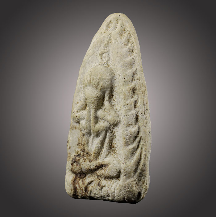 พระปิดตา(ไม่ทราบที่)เนื้อผงโซนขาว สภาพสมบูรณ์ครับ ขนาด กว้าง 1.8cm สูง 3 cm |