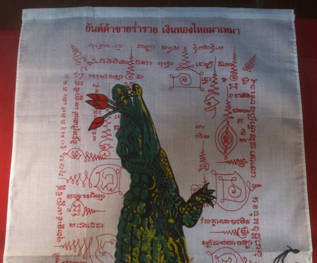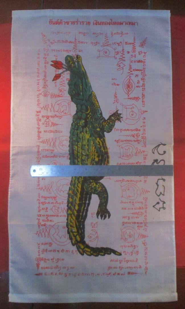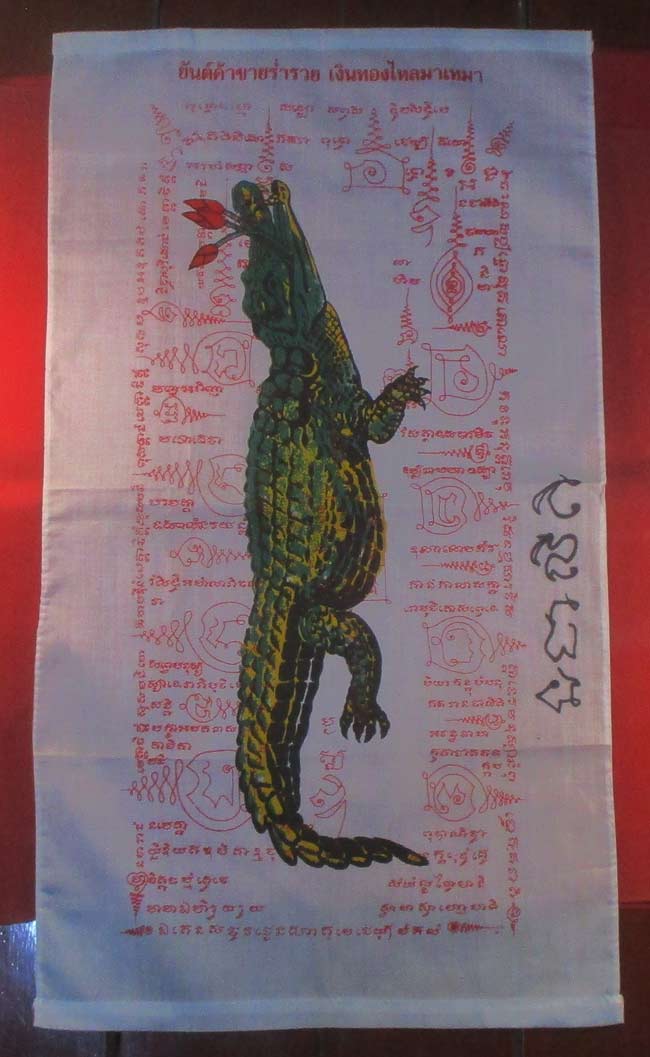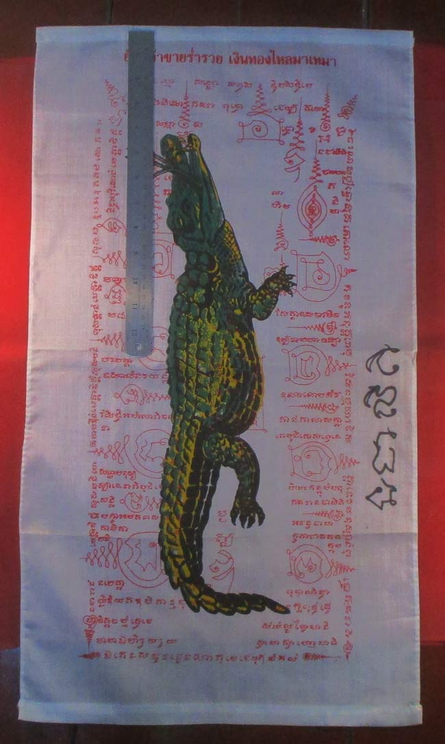 ผ้ายันต์ รูปจรเข้ ไม่ทราบที่ มีรอยจารยันต์ด้วนข้าง ครับ
