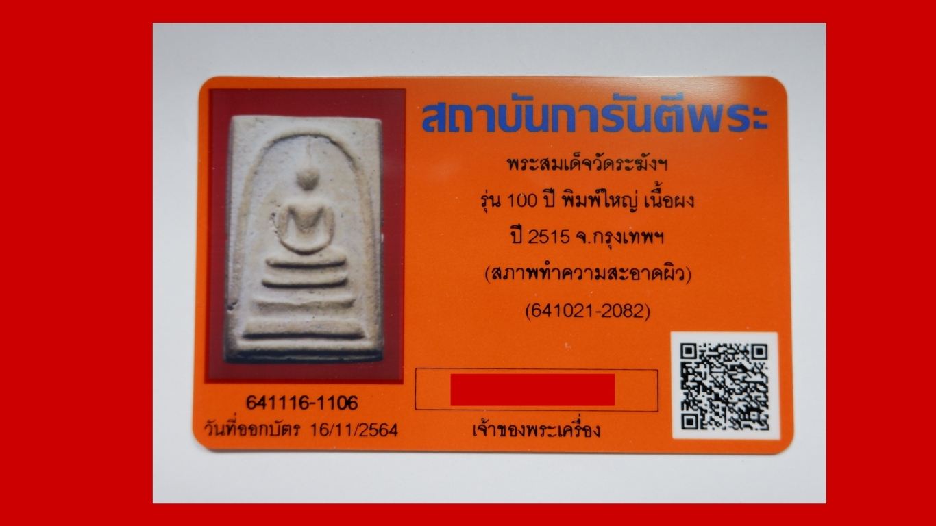 พระสมเด็จวัดระฆัง 100ปี พิมพ์ใหญ่ ปี2515 พร้อมบัตรรับรอง