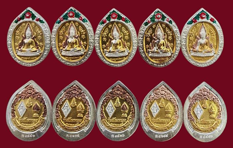 ( 5 องค์ ) เหรียญพระพุทธชินราช พิมพ์ รูปไข่ พิมพ์เล็ก เนื้อสามกษัตริย์ลงยา รุ่น ปิดทอง ปี 2547 สภาพสวยเดิมๆ มีโค๊คทุกองค์ครับ ( พระรุ่นนี้มีส่วนผสมจากแผ่นทองคำเปลวที่ลอกมาจากองค์พระพุทธชินราชครับ |