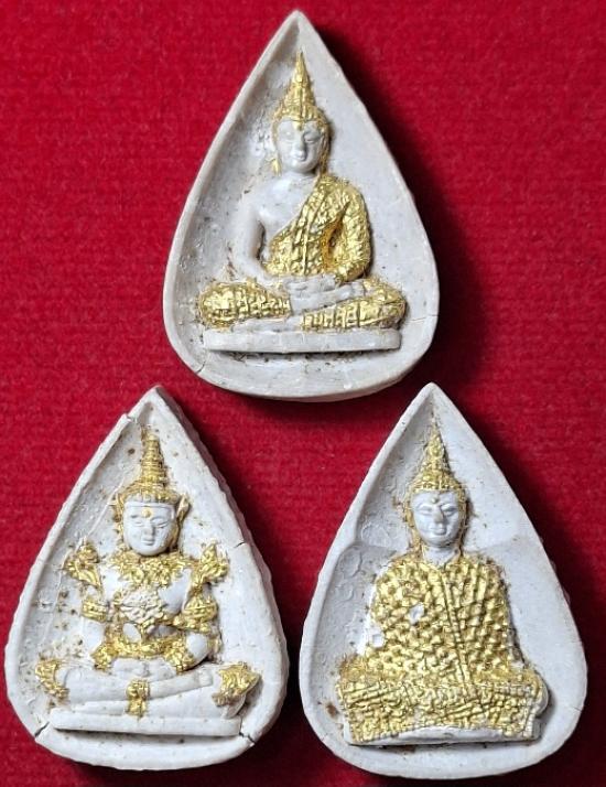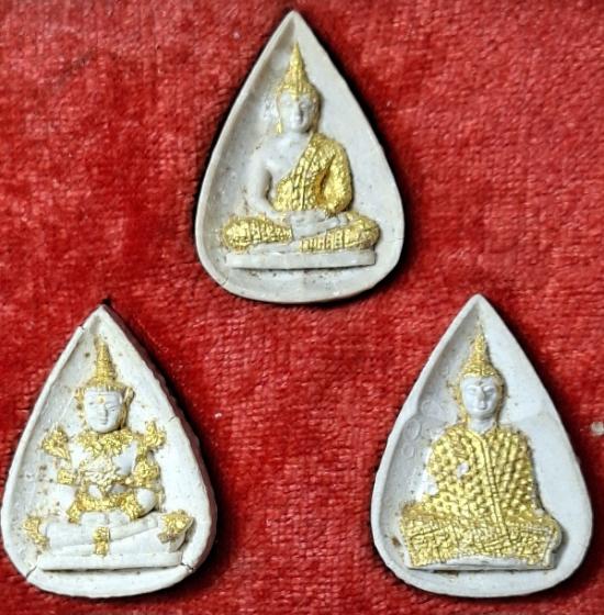 พระแก้วมรกต-หลังภปร. วัดพระศรีรัตนศาสดาราม ปี2530 เป็นพระแก้วมรกตเนื้อผง ทาทองมาแต่เดิม มีมาทั้งหมด1ชุด ใน1ชุดจะประกอบไปด้วยพระทั้งหมด3องค์ พระแก้วมรกตสภาพตามรูปเลยนะครับ มาพร้อมกล่องเดิมๆ และกล่องสภาพสมบูรณ์ เขี้ยวไม่หัก |