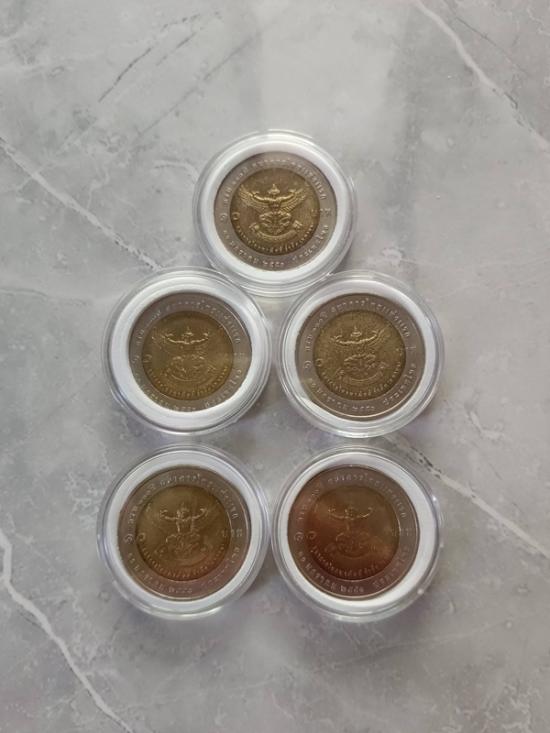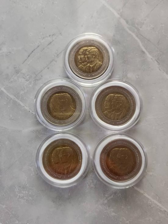 เหรียญ10บาท2สี ครบ100ปีธนาคารไทยแห่งแรก หลังครุฑ สภาพสวยพร้อมตลับพลาสติก 5 เหรียญ |