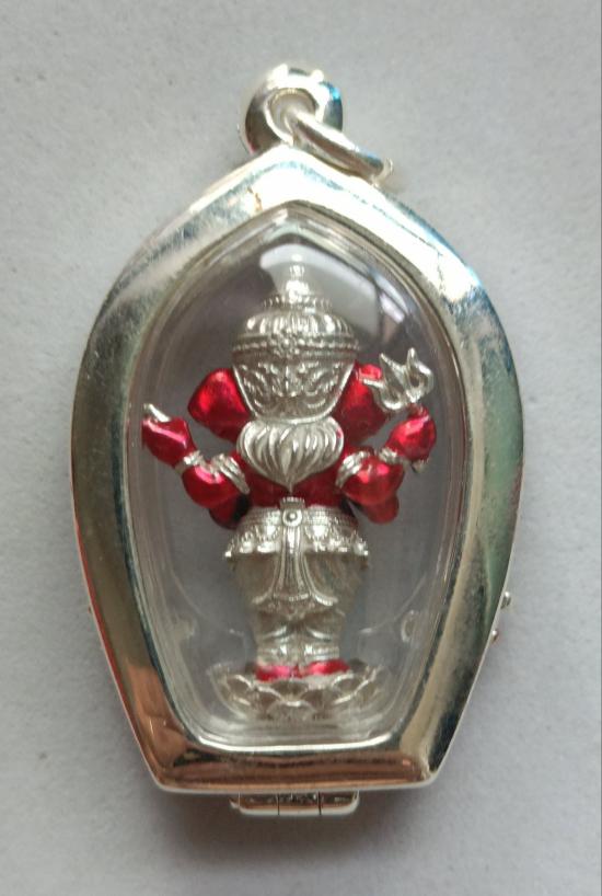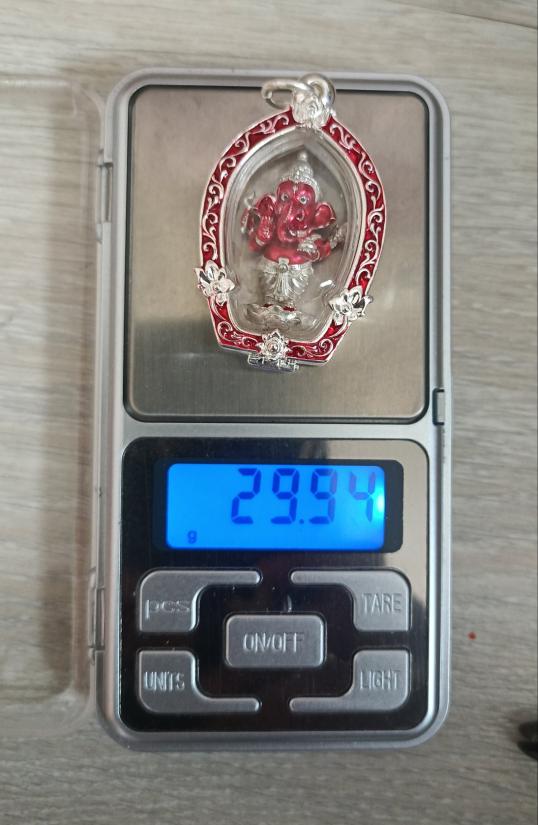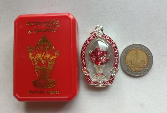 วัดใจเคาะเดียวแดงจ้า รูปหล่อพระพิฆเนศ เนื้อเงินลงยาแดง พร้อมตลับเลี่ยมกันน้ำ ชุบเงินลงยาแดง เคาะเดียวแดงจ้า