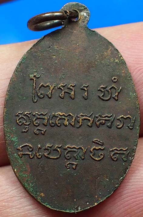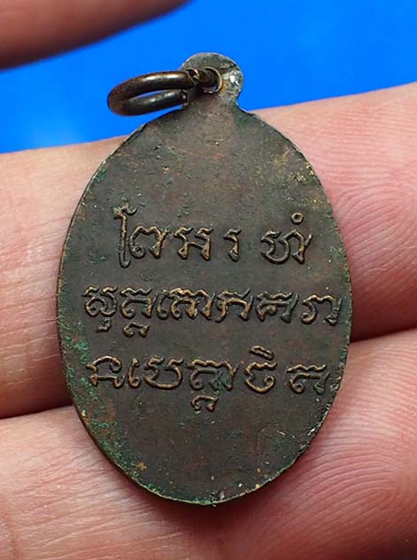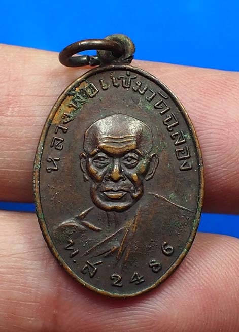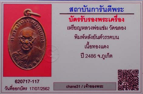 เหรียญหลวงพ่อแช่ม วัดฉลอง พิมพ์หลังยันต์วรรคบน เนื้อทองแดง ปี 2486 จ.ภูเก็ต พร้อมบัตรรับรองสถาบันการันตีพระ