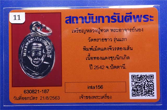เหรียญเม็ดแตง อาจารย์นอง รุ่นแรก พิมพ์จีวรสองเส้น วัดทรายขาว ปี 2542...11...63.8.24