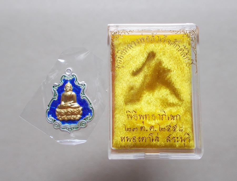 เหรียญหลวงพ่อสำเร็จศักดิ์สิทธิ์ วิหารฯจัดสร้าง พ.ศ.2558 เนื้อเงินลงยาหน้าทองคำ ตอก 2 โค๊ต ตอกเลข สภาพสวยกริ๊บ ซีนพลาสติกใสกล่องเดิม บัตรรับรองพระแท้การันตีพระ !! |