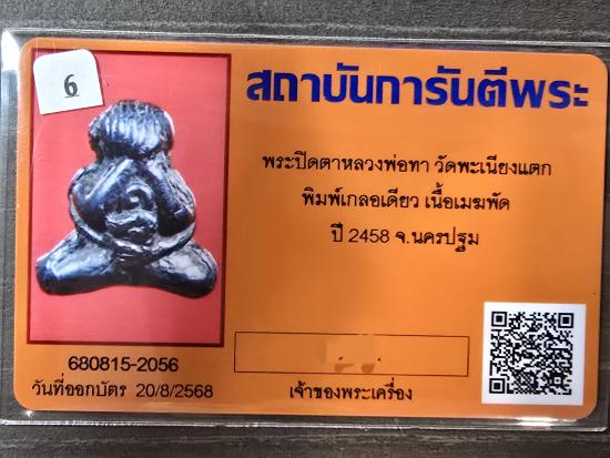 ปิดตาเกลอเดี่ยว หลวงพ่อทา วัดพะเนียงแตก สวยเดิม พร้อมบัตรรับรอง
