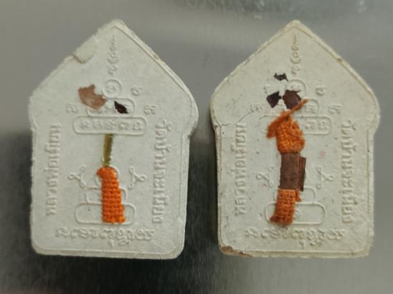 พระขุนแผนสาริกาหลวงพ่อเมียนวัดบ้านจะเนียงเนื้อพรายขาวปัดนาคฝังตะกรุดโรยพลอย 2องศ์