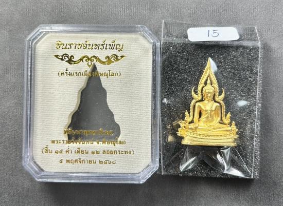 พระพุทธชินราชหล่อลอยองค์ รุ่น "ชินราชจันทร์เพ็ญ" เนื้อบรอนซ์นอกชุบทอง (กรรมการ) พิธีพุทธาภิเษกพระราชวังจันทน์ วันเป็งปุ๊ด |