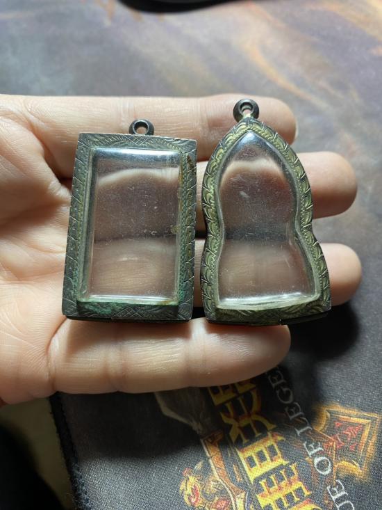 วัดใจของเหมามาขายถูกตามสภาพ กรอบเงินแท้ลงยา 2 ชิ้น ใส่พระสมเด็จทั่วไป+ใส่ พระนาคปรก หรือใกล้เคียง