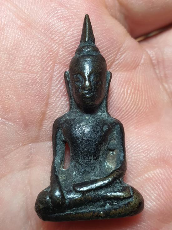 พระยอดธงหล่อโบราณเนื้อสัมฤทธิ์ ไม่ทราบที่ไม่ทราบรุ่น ขนาด1.7*3.2 ซม |