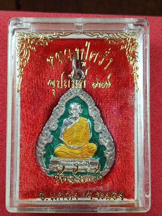 เหรียญหลวงปู่คร่ำ เนื้อเงินลงยา วัดวังหว้า ระยอง รุ่นอุปถัมภ์37 พร้อมกล่องเดิม น้ำหนัก 9.8 กรัม ตอกโค๊ต ตอกหมายเลข 3451 ยาเต็ม