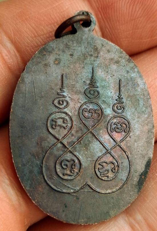 เหรียญนะโมสังฆาฏิ พ่อท่านคลิ้ง วัดถลุงทอง นครศรีธรรมราช ปี 2521 เนื้อแดงรมดำ