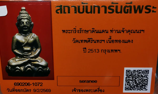 พระกริ่งรักษาดินแดน ท่านเจ้าคุณนรฯ วัดเทพศิรินทร์ฯ เนื้อทองเหลือง กริ่งดัง ปี2513 ตอกโค๊ตดาบไขว้ กรุงเทพฯ + บัตรG-pra สภาพเดิมค่ะ พระสภาพตามรูปทุกประการค่ะ