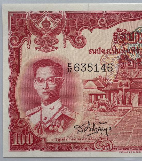 แบงค์ 100 บาท แดงเข้ม แบบที่ 9 พิมพ์โทมัส 1 ใบ สวยเดิมๆไม่ได้ผ่านการใช้งาน |