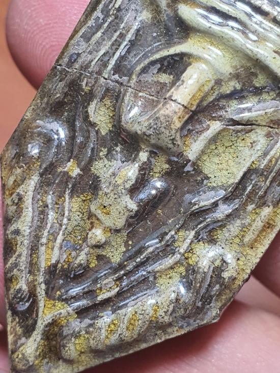 พระขุนแผนเคลือบไม่ทราบที่ไม่ทราบวัด ชำรุดซ่อมกลาง