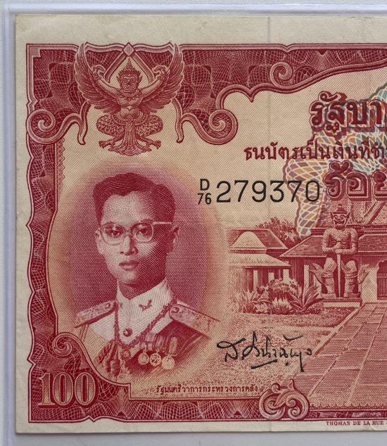 ธนบัตร 100 บาท รัชกาลที่ 9 แบบที่ 9 พิมพ์โทมัส จำนวน 1 ใบ สภาพสวยตามรูป |