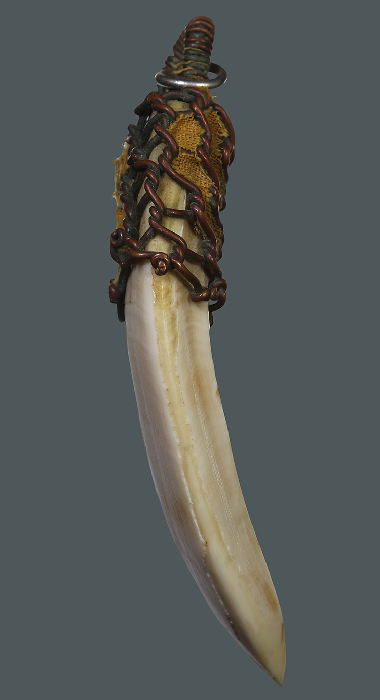 วัดใจ**เครื่องราง เขี้ยวหมูตันถักลวดเก่า ของทนสิทธิ์มีดีในตัวแม้ไม่ต้องปลุกเสก ยาว 3.5 นิ้ว..หายากครับ |