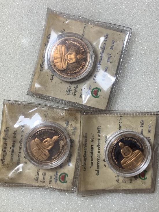 เหรียญหลวงพ่อโสธร รุ่นยกฉัตรทองคำ เนื้อทองแดง เคาะเดียว 3 เหรียญ |