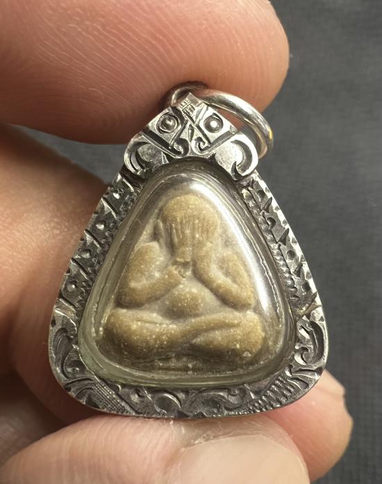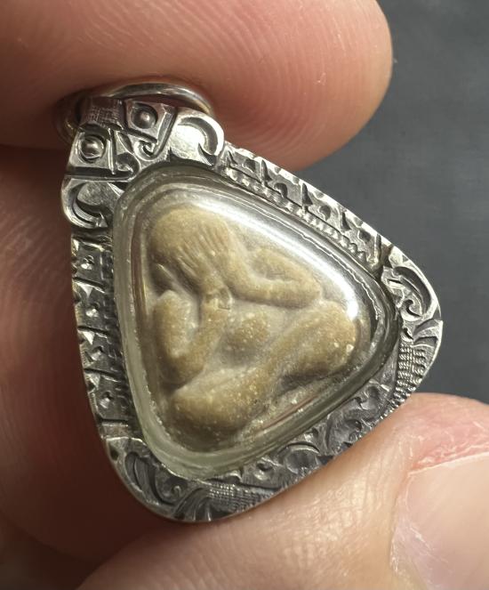 เลี่ยมเงินแท้ พระปิดตานะมิ-หลังใบโพธิ์ หลวงปู่สี วัดถ้ำเขาบุญนาค |
