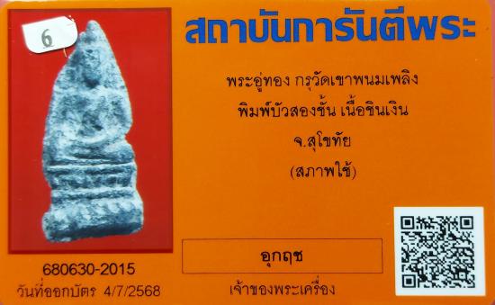 เคาะเดียว พระอู่ทอง กรุวัดเขาพนมเพลิง พิมพ์บัวสองชั้น เนื้อชินเงิน จ.สุโขทัย พร้อมบัตรรับรองจากจีพระ
