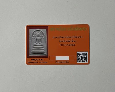 พระสมเด็จปรกโพธิ์หลวงพ่อแพ เนื้อผง ปี 2514 พร้อมบัตรรับรอง G