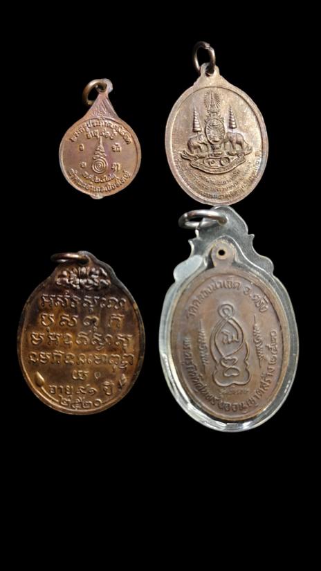 **100.** (4เหรียญ) 2เหรียญหลวงพ่อท่านแสง วัดคลองน้ำเจ็ด จ.ตรัง+1เหรียญหลวงพ่อนุ่ม วัดคงคาสวัสดิ์ ปากพนัง ปี2522+1เหรียญพ่อท่านสมภารนอโม ที่ระลึกยกยอดพระบรมธาตุเจดีย์ วัดบ้านสวน จ.พัทลุง ปี 2539