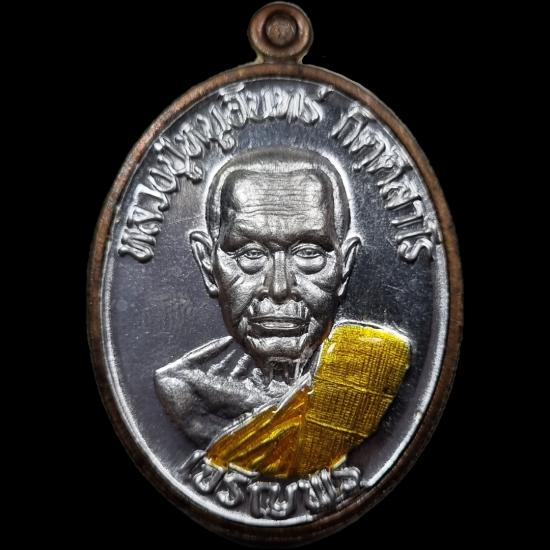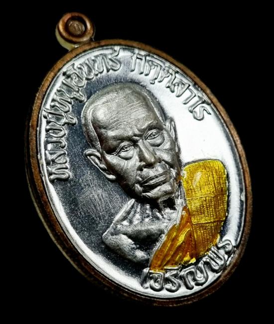 เจริญพรล่าง หลวงปู่หนูอินทร์ วัดป่าพุทธมงคล เนื้อมหาชนวนมวลสาร หน้ากากเงินเต็มแผ่น ลงยาจีวร อุดมวลสารไ ม่แกะซีล (4)